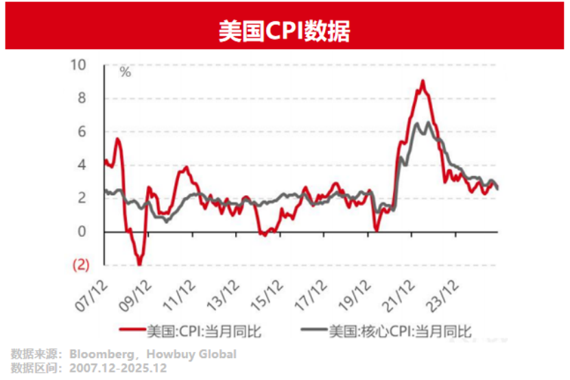據(jù)美國(guó)勞工部統(tǒng)計(jì),11月美國(guó)整體CPI同比2.7%,核心CPI同比2.6%,二者均顯著低于市場(chǎng)預(yù)期的3.1%和3.0%。12月,美國(guó)CPI同比繼續(xù)低于預(yù)期,顯示通脹整體受控。