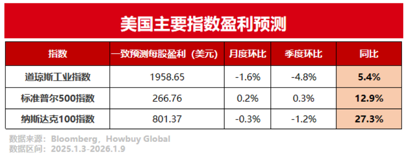 由上圖可見,截至今年1月9日,美股標(biāo)普500指數(shù)和納斯達(dá)克100指數(shù)的一致預(yù)測(cè)每股盈利同比增速分別處于12.9%和27.3%的高位。AI產(chǎn)業(yè)鏈的高景氣度與較高的企業(yè)盈利增速或繼續(xù)驅(qū)動(dòng)以美股為代表的全球股市走強(qiáng)。