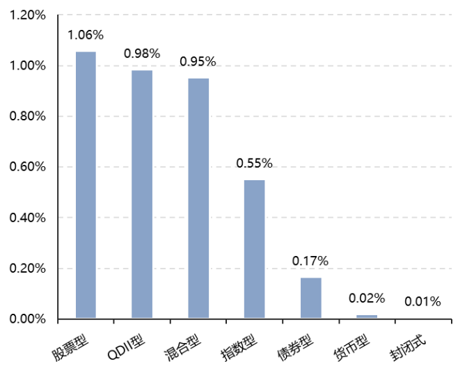 上周,國內(nèi)權(quán)益基金多數(shù)上漲,其中股票型基金平均上漲1.06%,混合型和指數(shù)型基金平均分別上漲0.95%和0.55%。QDII基金平均上漲0.98%。